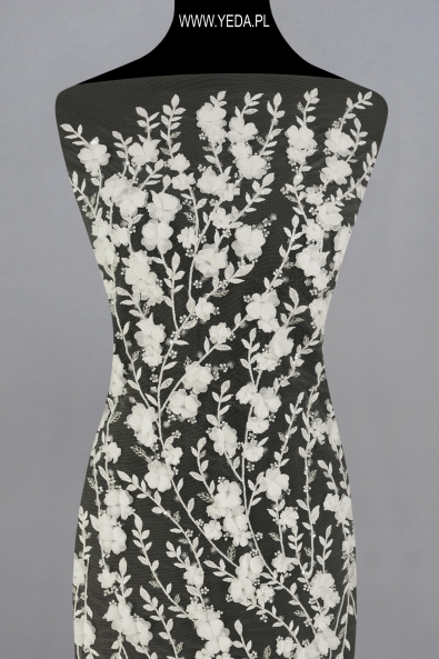 High-quality embellished lace with a unique pattern and decorative details. It was created for the most demanding women who want to achieve unique and effective styling. The presented lace will be perfect as a base for a wedding or evening creation. It owes its charm to the details on it. They reflect light and illuminate the material, and consequently catch the eye.