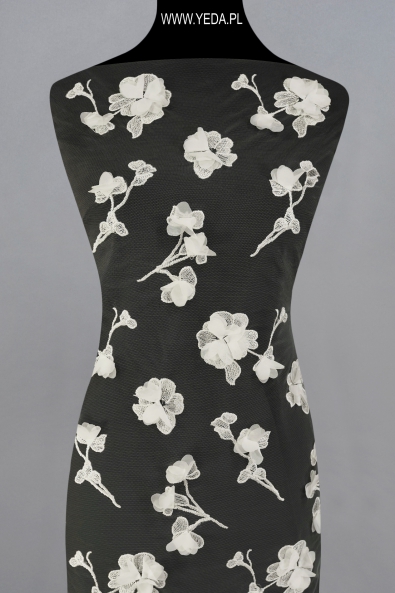 Feminine and elegant not embellished lace with the highest quality. The unique pattern makes this material ideally suited as a part of a cocktail, evening, or even wedding creation. The main aesthetic value of this product is just the mentioned pattern, because no additional decorations appear on the lace. This material is perfect for women who value classic style and subtle elegance.