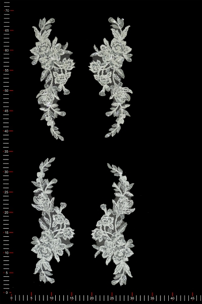 Decorated motif, created from elegant lace and unique accessories illuminating the patch. The whole design of the product allows you to use it as a unique decorative element in an evening, cocktail or wedding dress.