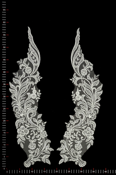 Decorated motif, created from elegant lace and unique accessories illuminating the patch. The whole design of the product allows you to use it as a unique decorative element in an evening, cocktail or wedding dress.