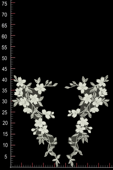Decorated motif, created from elegant lace and unique accessories illuminating the patch. The whole design of the product allows you to use it as a unique decorative element in an evening, cocktail or wedding dress.