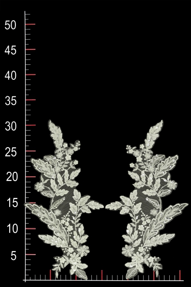 Decorated motif, created from elegant lace and unique accessories illuminating the patch. The whole design of the product allows you to use it as a unique decorative element in an evening, cocktail or wedding dress.