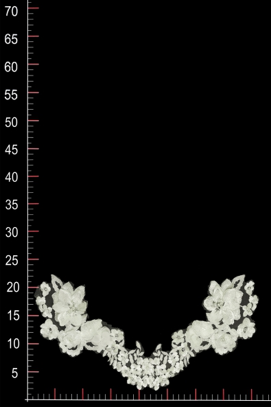 Decorated motif, created from elegant lace and unique accessories illuminating the patch. The whole design of the product allows you to use it as a unique decorative element in an evening, cocktail or wedding dress.