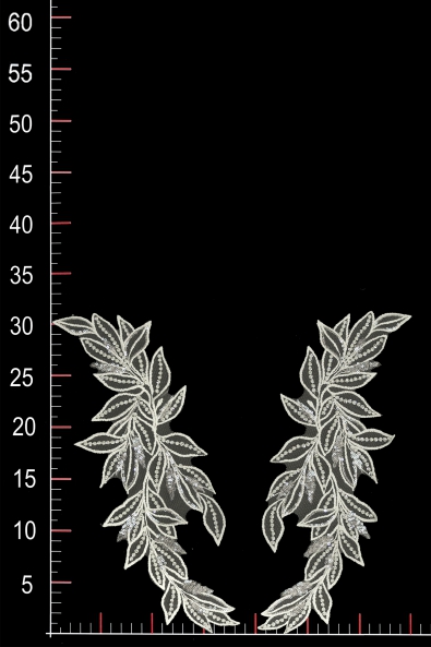 Decorated motif, created from elegant lace and unique accessories illuminating the patch. The whole design of the product allows you to use it as a unique decorative element in an evening, cocktail or wedding dress.
