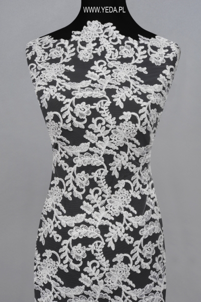 Feminine and elegant not embellished lace with the highest quality. The unique pattern makes this material ideally suited as a part of a cocktail, evening, or even wedding creation. The main aesthetic value of this product is just the mentioned pattern, because no additional decorations appear on the lace. This material is perfect for women who value classic style and subtle elegance.