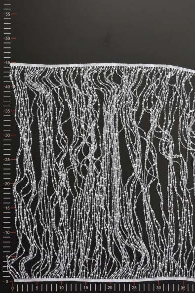 High quality decorated trim, created from extremely elegant lace. It delights with beautiful patterns and accessories that emphasize the charm of the fabric decorated with it. It is the perfect culmination of any wedding, evening or cocktail dress. This inconspicuous detail catches the eye and evokes admiration.