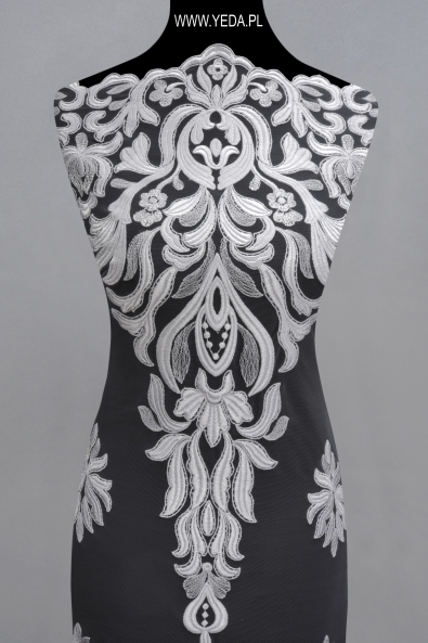 High quality lace , made of classic guipure . It is distinguished by a convex and stylish pattern that catches the eye. Perfect for creating an amazing evening, wedding or cocktail outfit.