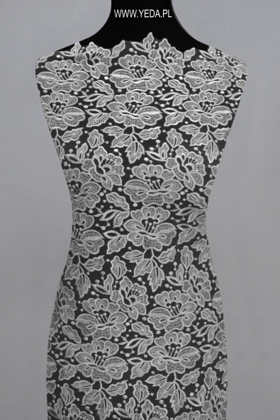 High quality lace , made of classic guipure . It is distinguished by a convex and stylish pattern that catches the eye. Perfect for creating an amazing evening, wedding or cocktail outfit.