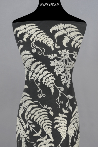 Beautiful decorated lace embroidered on delicate, slightly stretchy tulle. Ideally suited for creating a unique wedding or communion dress.