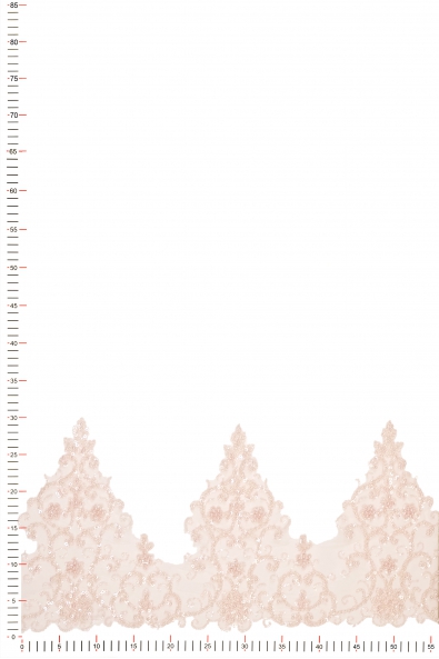 High quality decorated trim, created from extremely elegant lace. It delights with beautiful patterns and accessories that emphasize the charm of the fabric decorated with it. It is the perfect culmination of any wedding, evening or cocktail dress. This inconspicuous detail catches the eye and evokes admiration.