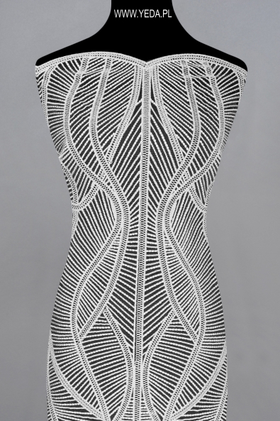 Feminine and elegant not embellished lace with the highest quality. The unique pattern makes this material ideally suited as a part of a cocktail, evening, or even wedding creation. The main aesthetic value of this product is just the mentioned pattern, because no additional decorations appear on the lace. This material is perfect for women who value classic style and subtle elegance.