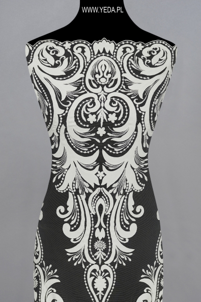 Feminine and elegant not embellished lace with the highest quality. The unique pattern makes this material ideally suited as a part of a cocktail, evening, or even wedding creation. The main aesthetic value of this product is just the mentioned pattern, because no additional decorations appear on the lace. This material is perfect for women who value classic style and subtle elegance.