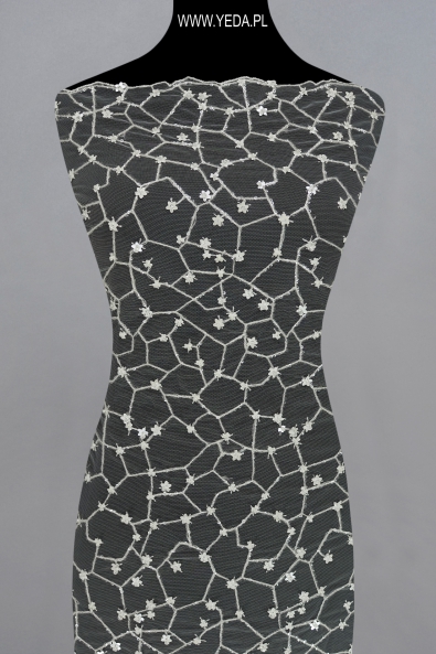 High-quality embellished lace with a unique pattern and decorative details. It was created for the most demanding women who want to achieve unique and effective styling. The presented lace will be perfect as a base for a wedding or evening creation. It owes its charm to the details on it. They reflect light and illuminate the material, and consequently catch the eye.