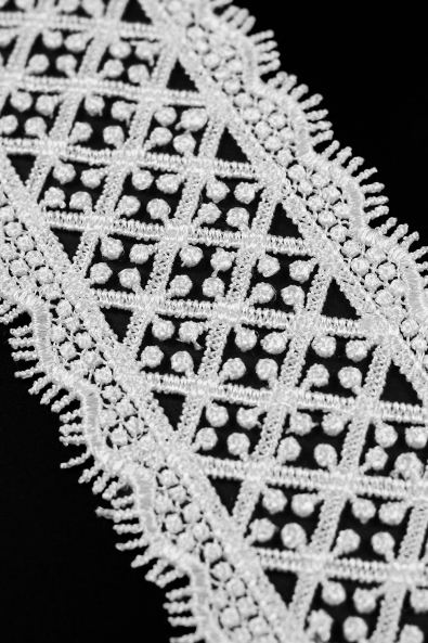 High quality decorated trim, created from extremely elegant lace. Perfect as a decorative detail on a wedding, ball or evening dress. This type of lace tape is universal and extremely aesthetic. It is also often used by handicraft lovers.