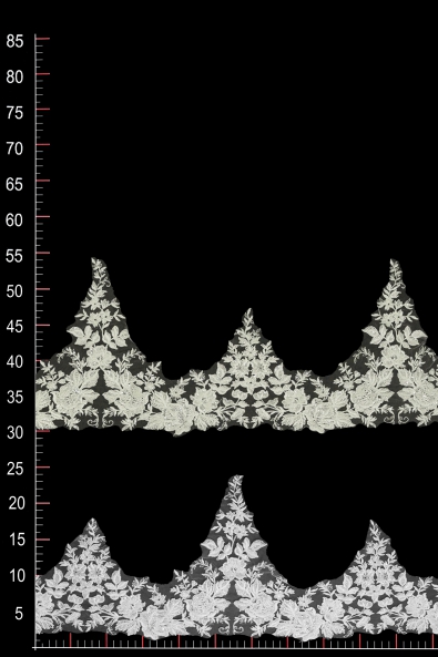 High quality decorated trim, created from extremely elegant lace. It delights with beautiful patterns and accessories that emphasize the charm of the fabric decorated with it. It is the perfect culmination of any wedding, evening or cocktail dress. This inconspicuous detail catches the eye and evokes admiration.
