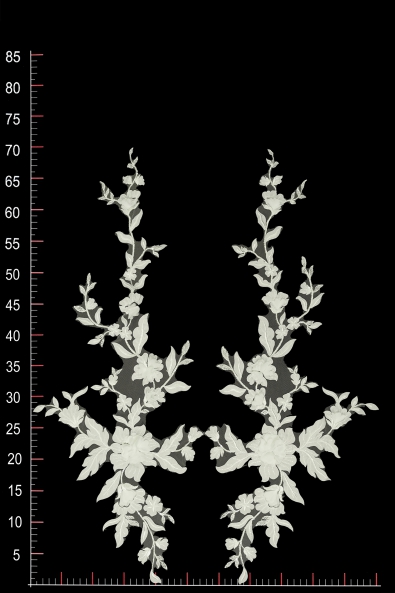 Aplikacja zdobiona, stworzona z eleganckiej koronki oraz niepowtarzalnych, rozświetlających naszywkę dodatków. Cały design produktu pozwala wykorzystać go jako wyjątkowy element dekoracyjny sukni wieczorowej, koktajlowej lub ślubnej.