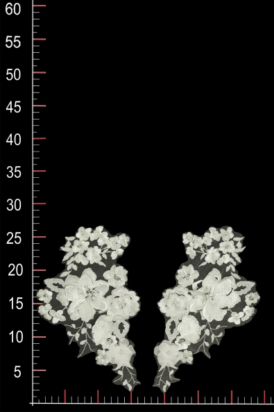 Aplikacja zdobiona, stworzona z eleganckiej koronki oraz niepowtarzalnych, rozświetlających naszywkę dodatków. Cały design produktu pozwala wykorzystać go jako wyjątkowy element dekoracyjny sukni wieczorowej, koktajlowej lub ślubnej.