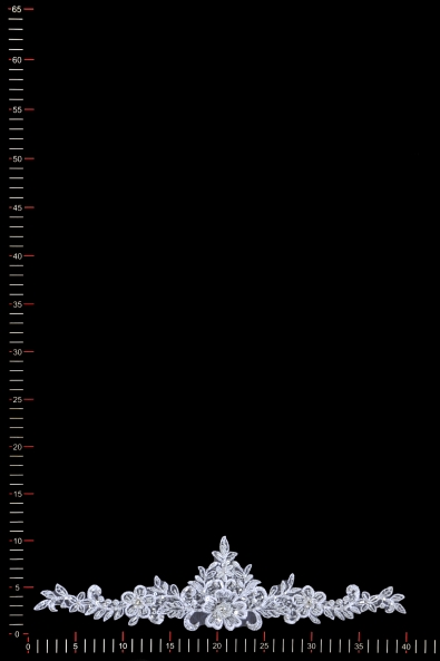 Aplikacja zdobiona, stworzona z eleganckiej koronki oraz niepowtarzalnych, rozświetlających naszywkę dodatków. Cały design produktu pozwala wykorzystać go jako wyjątkowy element dekoracyjny sukni wieczorowej, koktajlowej lub ślubnej