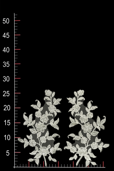 Aplikacja zdobiona, stworzona z eleganckiej koronki oraz niepowtarzalnych, rozświetlających naszywkę dodatków. Cały design produktu pozwala wykorzystać go jako wyjątkowy element dekoracyjny sukni wieczorowej, koktajlowej lub ślubnej.