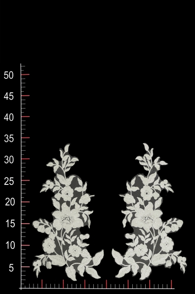 Aplikacja zdobiona, stworzona z eleganckiej koronki oraz niepowtarzalnych, rozświetlających naszywkę dodatków. Cały design produktu pozwala wykorzystać go jako wyjątkowy element dekoracyjny sukni wieczorowej, koktajlowej lub ślubnej.
