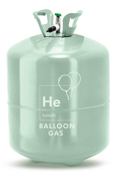 Butla z helem na maks. 90 szt. balonów w kolorze zielonym z czarnym nadrukiem, pojemność ok. 0.59 m³.