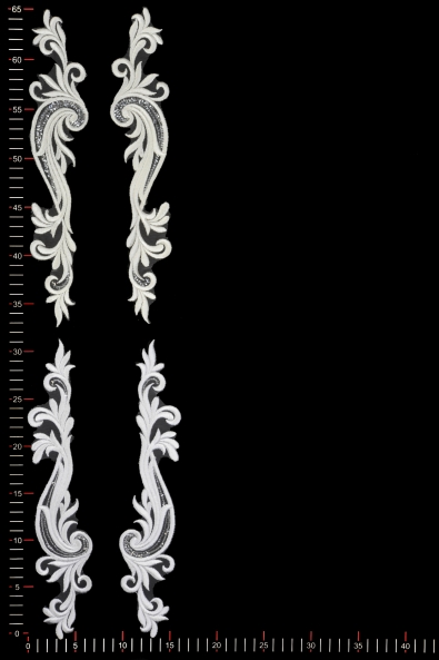 Aplikacja zdobiona stworzona z najwyższej jakości gipiury. Wzrok przyciągają wyjątkowe zdobienia, które nadają naszywce ekskluzywnego charakteru, a ponadto rozświetlają i podkreślają wypukły kształt aplikacji. Cała dekoracja doskonale sprawdza się jako element dekoracyjny sukni ślubnej, wieczorowej lub koktajlowej.