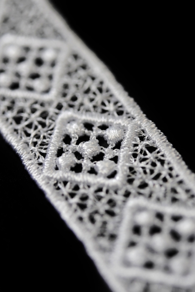 Wysokiej jakości gipiura. Jej ponadczasowy, elegancki wzór idealnie sprawdzi się w klasycznych i nowoczesnych modelach sukien ślubnych.
