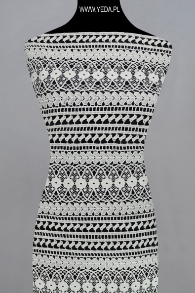Wysokiej jakości koronka niezdobiona, stworzona z klasycznej gipiury. Wyróżnia się wypukłym i stylowym wzorem, który przyciąga spojrzenia. Sprawdzi się doskonale do stworzenia zachwycającej kreacji wieczorowej, ślubnej lub koktajlowej.