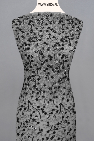 KORONKA WIECZOROWA TIUL ZDOBIONY CEKINAMI I FRĘDZLAMI IT4004877 Cena 34,21 zł / metr Czarny metr Dodaj do koszyka