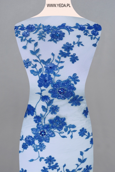 Wysokiej jakości zdobiona koronka wieczorowa stworzona z myślą o kobietach, które cenią elegancję. Wyjątkowy wzór wyhaftowany został na tiulu, a następnie ozdobiony efektownymi detalami. Tego typu materiał przyciąga spojrzenia i nadaje użytkowniczce uwodzicielskiego charakteru. Taka koronka to podstawa klasycznej sukienki wieczorowej lub koktajlowej