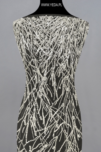Wysokiej jakości koronka zdobiona wyróżniająca się niebanalnym wzorem oraz dekoracyjnymi detalami. Stworzona została z myślą o najbardziej wymagających kobietach, którym zależy na uzyskaniu wyjątkowej i efektownej stylizacji. Prezentowana koronka świetnie sprawdzi się jako baza ślubnej lub wieczorowej kreacji. Swój urok zawdzięcza znajdującym się na niej detalom. Odbijają one światło i rozświetlają materiał, a w konsekwencji przykuwają spojrzenia.
