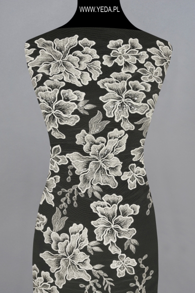 Wysokiej jakości koronka zdobiona wyróżniająca się niebanalnym wzorem oraz dekoracyjnymi detalami. Stworzona została z myślą o najbardziej wymagających kobietach, którym zależy na uzyskaniu wyjątkowej i efektownej stylizacji. Prezentowana koronka świetnie sprawdzi się jako baza ślubnej lub wieczorowej kreacji. Swój urok zawdzięcza znajdującym się na niej detalom. Odbijają one światło i rozświetlają materiał, a w konsekwencji przykuwają spojrzenia.