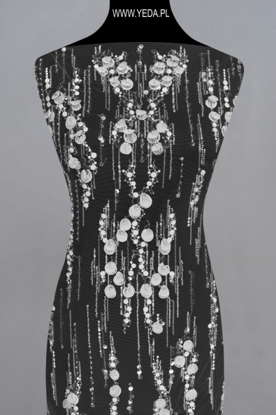 Wysokiej jakości koronka zdobiona wyróżniająca się niebanalnym wzorem oraz dekoracyjnymi detalami. Stworzona została z myślą o najbardziej wymagających kobietach, którym zależy na uzyskaniu wyjątkowej i efektownej stylizacji. Prezentowana koronka świetnie sprawdzi się jako baza ślubnej lub wieczorowej kreacji. Swój urok zawdzięcza znajdującym się na niej detalom. Odbijają one światło i rozświetlają materiał, a w konsekwencji przykuwają spojrzenia.