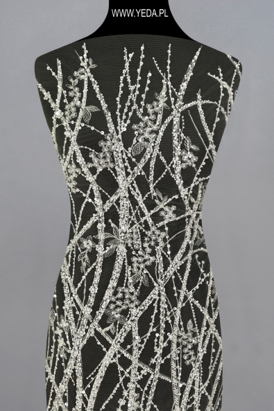 Wysokiej jakości koronka zdobiona wyróżniająca się niebanalnym wzorem oraz dekoracyjnymi detalami. Stworzona została z myślą o najbardziej wymagających kobietach, którym zależy na uzyskaniu wyjątkowej i efektownej stylizacji. Prezentowana koronka świetnie sprawdzi się jako baza ślubnej lub wieczorowej kreacji. Swój urok zawdzięcza znajdującym się na niej detalom. Odbijają one światło i rozświetlają materiał, a w konsekwencji przykuwają spojrzenia.
