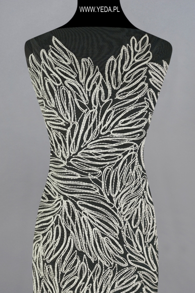 Kobieca i elegancka koronka niezdobiona wyróżniająca się najwyższą jakością wykonania. Wyjątkowy deseń sprawia, że materiał ten doskonale sprawdzi się jako część koktajlowej, wieczorowej, a nawet ślubnej kreacji. Głównym walorem estetycznym tego produktu jest właśnie wspomniany wzór, ponieważ na koronce nie pojawiają się żadne dodatkowe zdobienia. Ten materiał doskonale pasuje do kobiet, które cenią klasyczny styl i płynącą z niego subtelną elegancję.