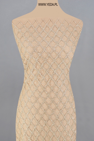 Wysokiej jakości zdobiona koronka wieczorowa stworzona z myślą o kobietach, które cenią elegancję. Wyjątkowy wzór wyhaftowany został na tiulu, a następnie ozdobiony efektownymi detalami. Tego typu materiał przyciąga spojrzenia i nadaje użytkowniczce uwodzicielskiego charakteru. Taka koronka to podstawa klasycznej sukienki wieczorowej lub koktajlowej