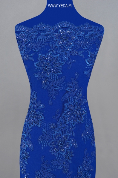 Wysokiej jakości zdobiona koronka wieczorowa stworzona z myślą o kobietach, które cenią elegancję. Wyjątkowy wzór wyhaftowany został na tiulu, a następnie ozdobiony efektownymi detalami. Tego typu materiał przyciąga spojrzenia i nadaje użytkowniczce uwodzicielskiego charakteru. Taka koronka to podstawa klasycznej sukienki wieczorowej lub koktajlowej