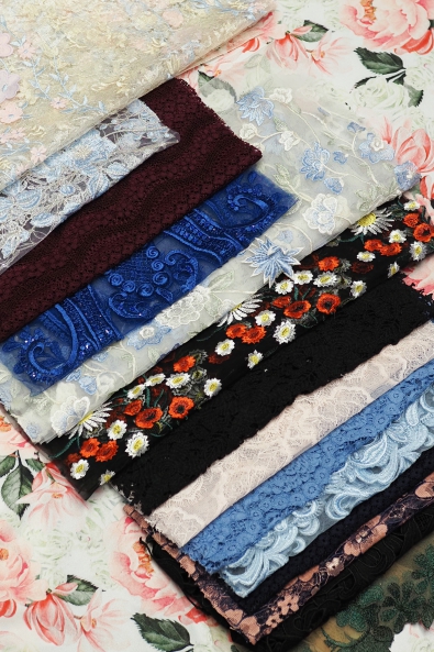 1 kg zawiera skrawki koronek o różnych wielkościach i wzorach.