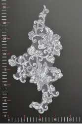 Aplikacja zdobiona, stworzona z eleganckiej koronki oraz niepowtarzalnych, rozświetlających naszywkę dodatków. Cały design produktu pozwala wykorzystać go jako wyjątkowy element dekoracyjny sukni wieczorowej, koktajlowej lub ślubnej