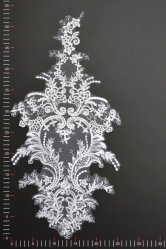 Aplikacja zdobiona, stworzona z eleganckiej koronki oraz niepowtarzalnych, rozświetlających naszywkę dodatków. Cały design produktu pozwala wykorzystać go jako wyjątkowy element dekoracyjny sukni wieczorowej, koktajlowej lub ślubnej