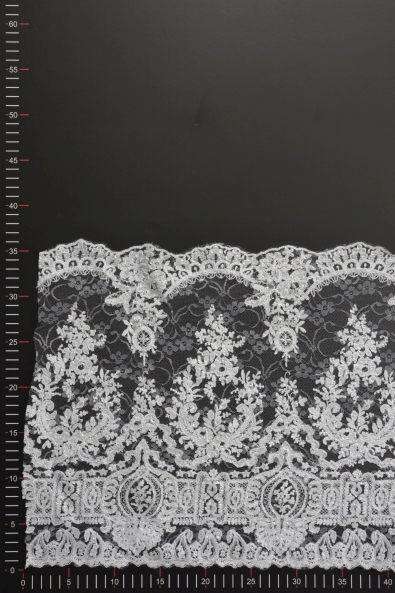 Wysokiej jakości taśma zdobiona, stworzona z niezwykle eleganckiej koronki. Zachwyca pięknymi wzorami oraz dodatkami, które podkreślają urok okraszonej nią tkaniny. Stanowi doskonałe zwieńczenie każdej sukni ślubnej, wieczorowej lub koktajlowej. Ten niepozorny detal przykuwa wzrok i budzi zachwyt.