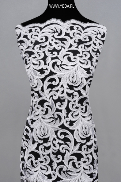 Wysokiej jakości koronka niezdobiona, stworzona z klasycznej gipiury. Wyróżnia się wypukłym i stylowym wzorem, który przyciąga spojrzenia. Sprawdzi się doskonale do stworzenia zachwycającej kreacji wieczorowej, ślubnej lub koktajlowej.