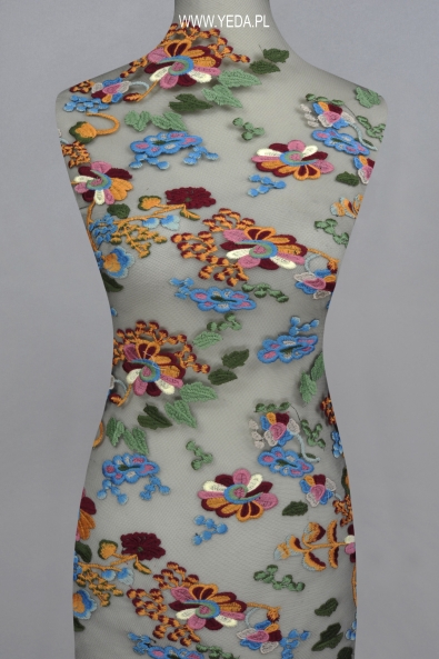 WIELOKOLOROWY HAFT NA CZARNYM TIULU