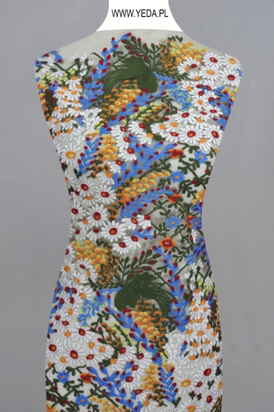 WIELOKOLOROWA KORONKA WYHAFTOWANA NA CZARNYM TIULU