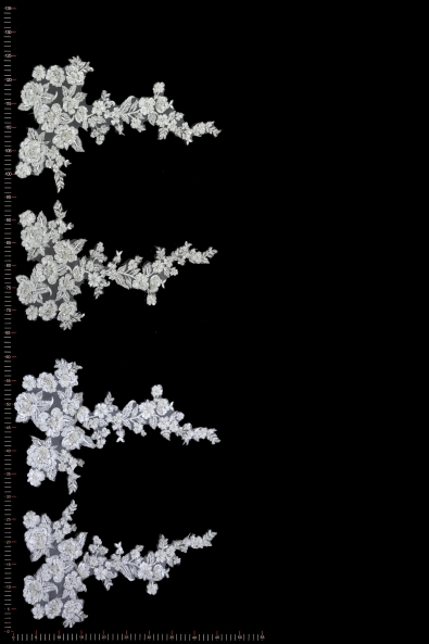 Aplikacja zdobiona, stworzona z eleganckiej koronki oraz niepowtarzalnych, rozświetlających naszywkę dodatków. Cały design produktu pozwala wykorzystać go jako wyjątkowy element dekoracyjny sukni wieczorowej, koktajlowej lub ślubnej.