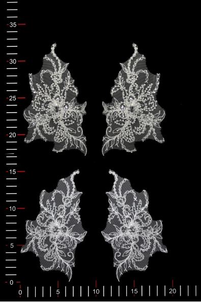 Aplikacja zdobiona, stworzona z eleganckiej koronki oraz niepowtarzalnych, rozświetlających naszywkę dodatków. Cały design produktu pozwala wykorzystać go jako wyjątkowy element dekoracyjny sukni wieczorowej, koktajlowej lub ślubnej.