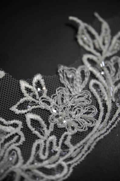 Taśma zdobiona perełkami i transparentnymi cekinami. Do kompletu aplikacje WA25475