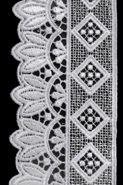 Wysokiej jakości gipiura. Jej ponadczasowy, elegancki wzór idealnie sprawdzi się w klasycznych i nowoczesnych modelach sukien ślubnych.