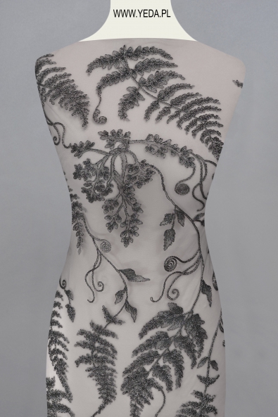 Wysokiej jakości zdobiona koronka wieczorowa stworzona z myślą o kobietach, które cenią elegancję. Wyjątkowy wzór wyhaftowany został na tiulu, a następnie ozdobiony efektownymi detalami. Tego typu materiał przyciąga spojrzenia i nadaje użytkowniczce uwodzicielskiego charakteru. Taka koronka to podstawa klasycznej sukienki wieczorowej lub koktajlowej