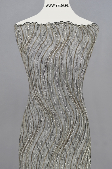 Wysokiej jakości zdobiona koronka wieczorowa stworzona z myślą o kobietach, które cenią elegancję. Wyjątkowy wzór wyhaftowany został na tiulu, a następnie ozdobiony efektownymi detalami. Tego typu materiał przyciąga spojrzenia i nadaje użytkowniczce uwodzicielskiego charakteru. Taka koronka to podstawa klasycznej sukienki wieczorowej lub koktajlowej